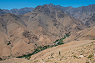 Soon we reach the Ououraine Pass at 3 120 meters where we are rewarded with a grand panorama of both the Toubkal massif and the Siroua summit and plateau. Far below we can see small patches of cultivated land and tiny villages hunkering under the impressive mountain range. If we are lucky we will spot an eagle or a falcon sailing on the winds above our heads.